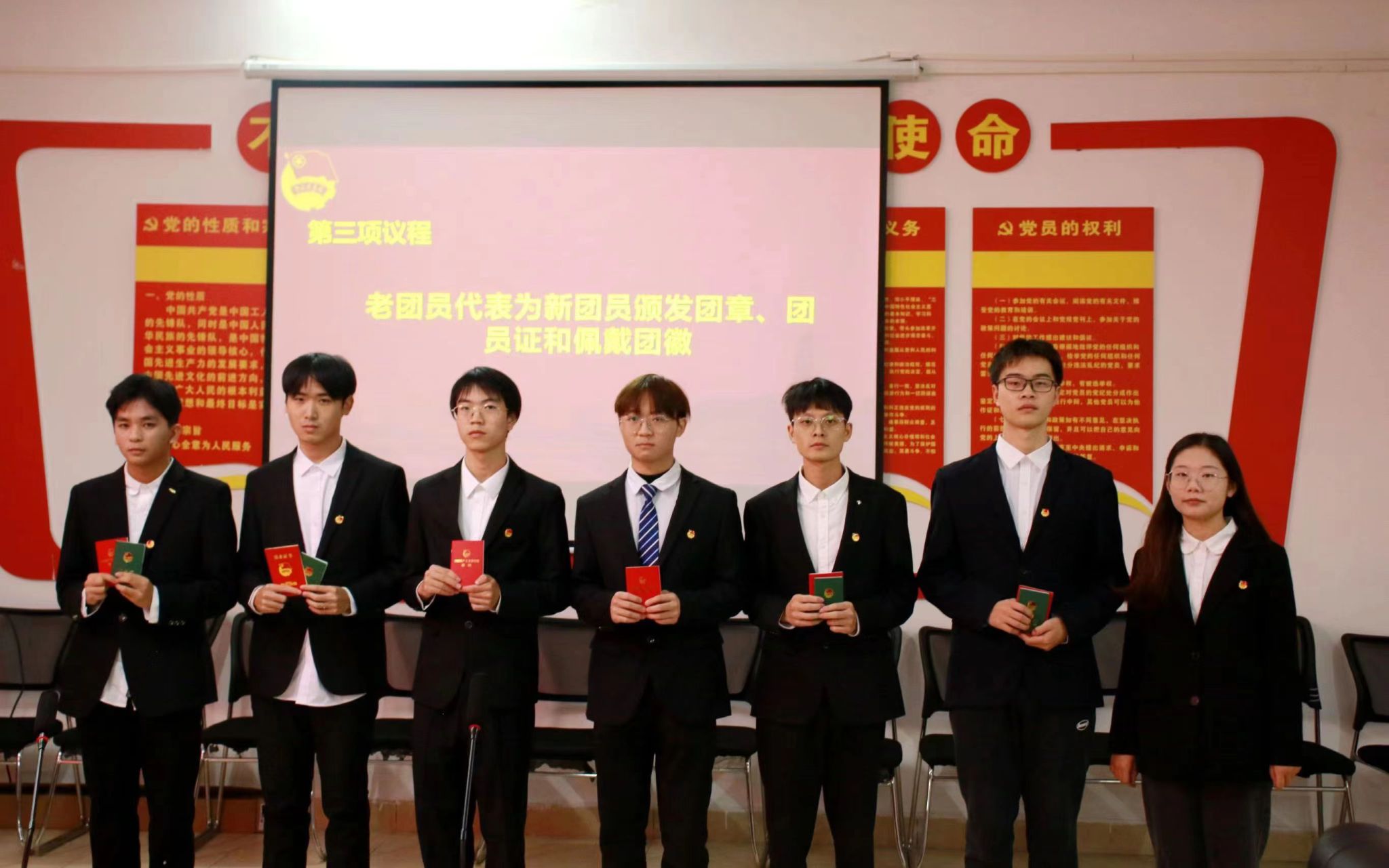 仪式伊始,主持人宣读新团员名单,老团员代表为新团员颁发团徽、团员证和团章,并在团委书记的带领下庄严宣誓。随后,新团员代表陈宇彬同学上台发表感言,表达成为团员的喜悦之情并分享未来新规划。老团员代表郭琳同学对新团员进行勉励,提出要求。最后,上级团组织代表刘辉老师对新团员表示祝贺,并要求新团员认真学习团章、团史,始终坚持共产党的领导,坚定地信仰中国特色社会主义。