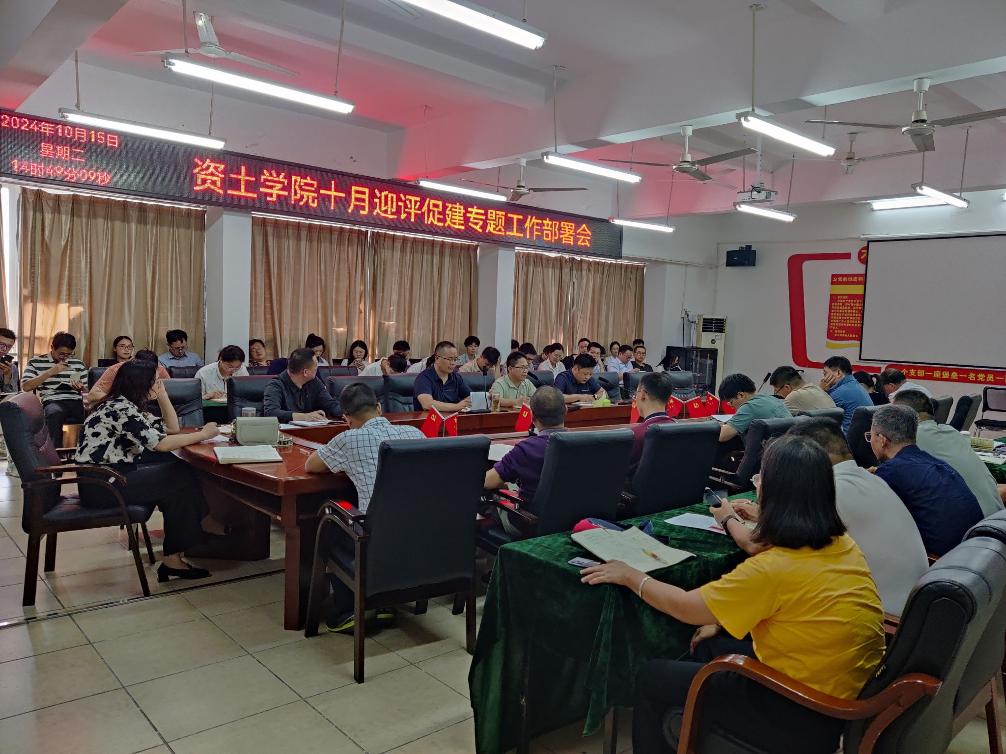 学院教学工作负责人代靖怡详细部署了十月份迎评促建的具体工作任务。提出学院要严格按照评估指标体系要求,逐项对照检查,查找存在的问题和不足,并制定切实可行的整改措施。要求各教研室落实2023-2024学年所有试卷、实验材料等教学资料整改工作,确保各项教学材料齐全、规范。严格按照学院要求,加强沟通协作,形成合力,并在学院要求的时间节点之前完成资料整改归档工作。