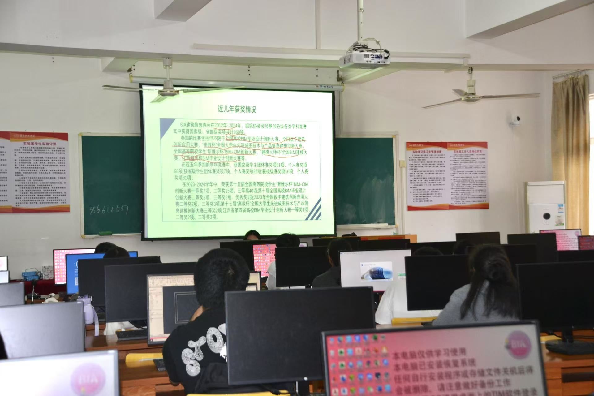 主讲人蒋荟兰讲解全国数字建筑创新应用大赛、BIM毕业设计创新大赛、全国大学生先进成图大赛等专业相关比赛,并向同学们阐述参加专业相关比赛不仅可以充实大学生活,还有助于争取奖学金和个人荣誉,提升专业技能水平,为日后的职场工作积累宝贵经验。活动过程中,建筑信息协会请到造价213班崔枝雪学姐来分享自己的比赛经历,为学生们树立榜样,指明方向,并向学生们说明比赛为个人带来的价值。