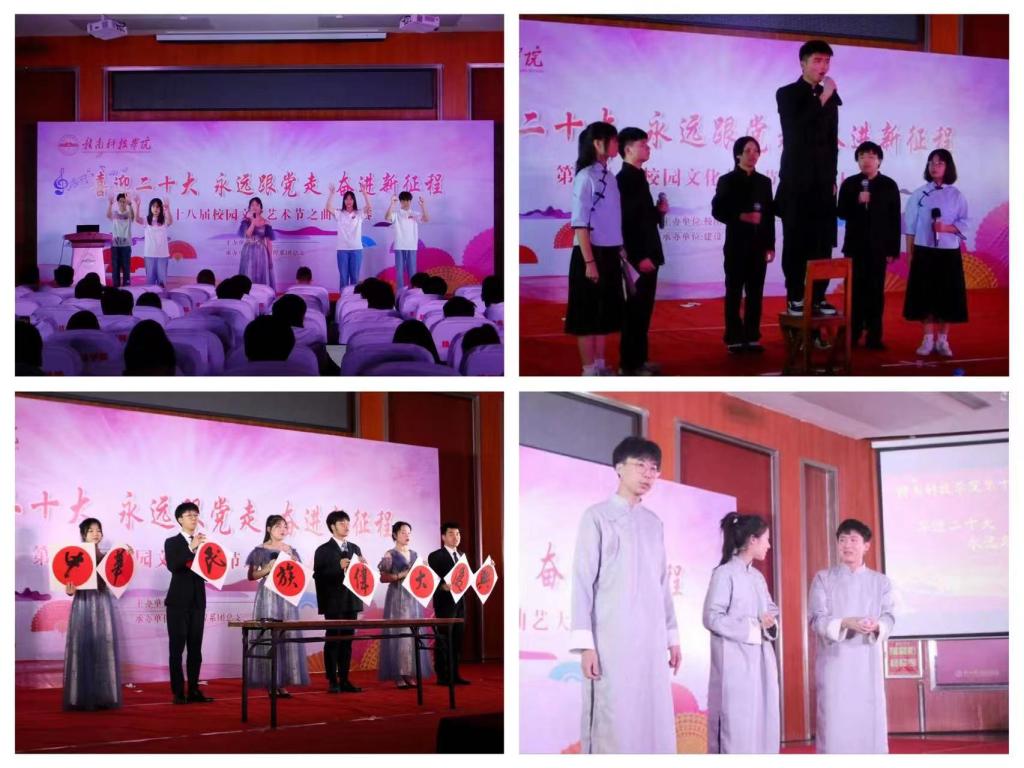本网讯:5月21日下午,以“喜迎二十大,永远跟党走,奋进新征程”为主题的第十八届校园文化艺术节曲艺大赛在逸豪学术报告厅正式拉开帷幕。本次大赛由william威廉中文院团委主办,建设工程系团总支承办。学院国交办主任涂敏、思政部戴朝护、教务办黄勋担任此次比赛的评委。