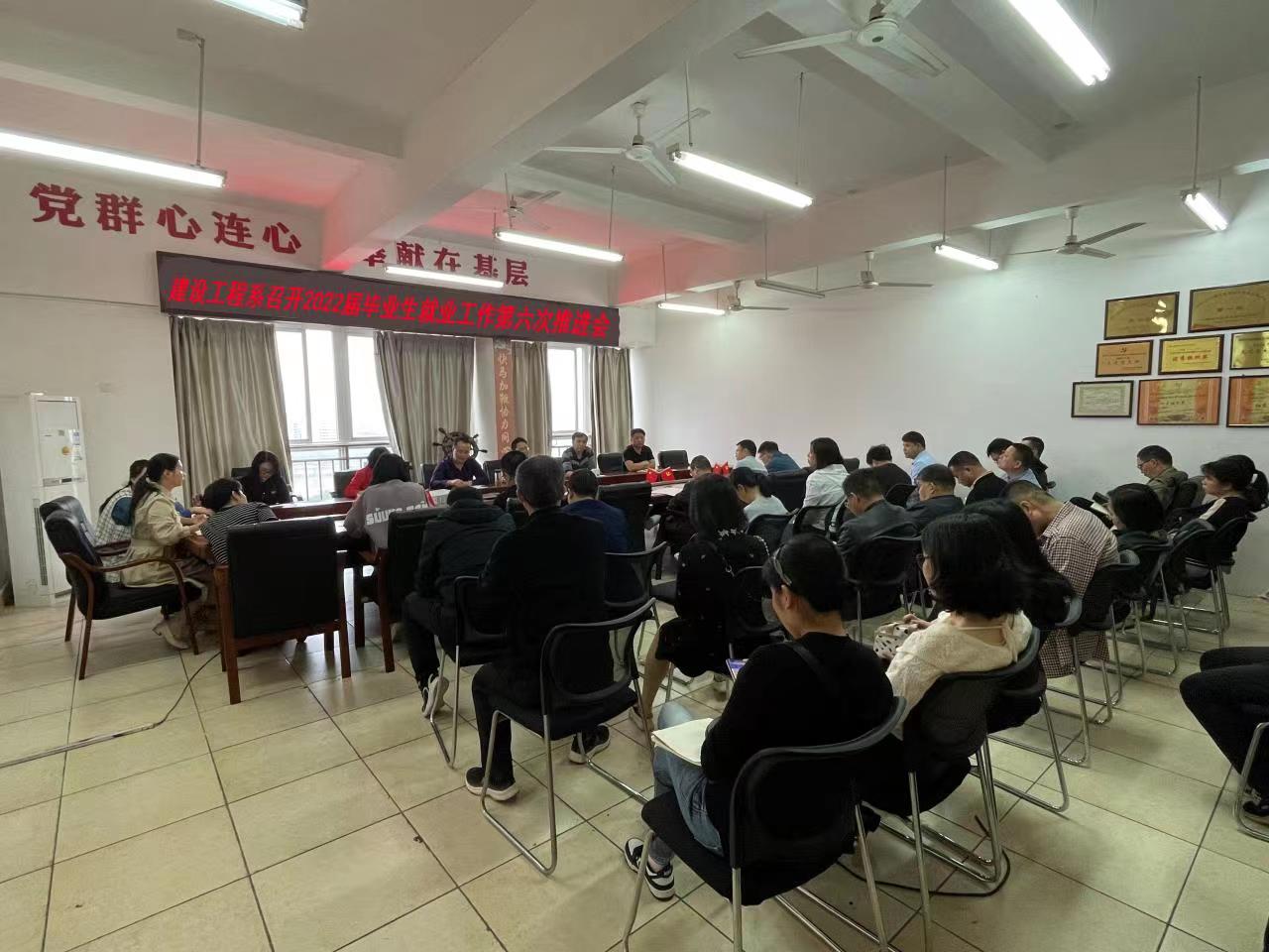 本网讯:为进一步推进2022届毕业生就业工作,5月10日下午,建设工程系于系会议室召开了2022届毕业生就业工作第六次推进会。系党总支书记李少华、主任卢志刚、副主任代靖怡、涂黎明、辅导员徐新木以及2022届毕业生班主任、毕业设计指导老师参加此次会议。会议由李少华主持。