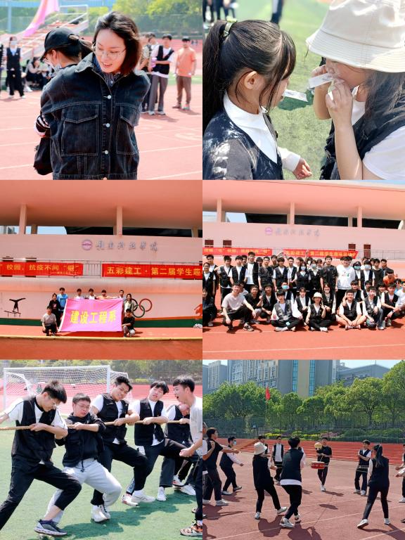 4月5日上午,建工系号召全系同学走出宿舍,加强体育锻炼,在田径场开展“五彩建工·第二届趣味运动会”。