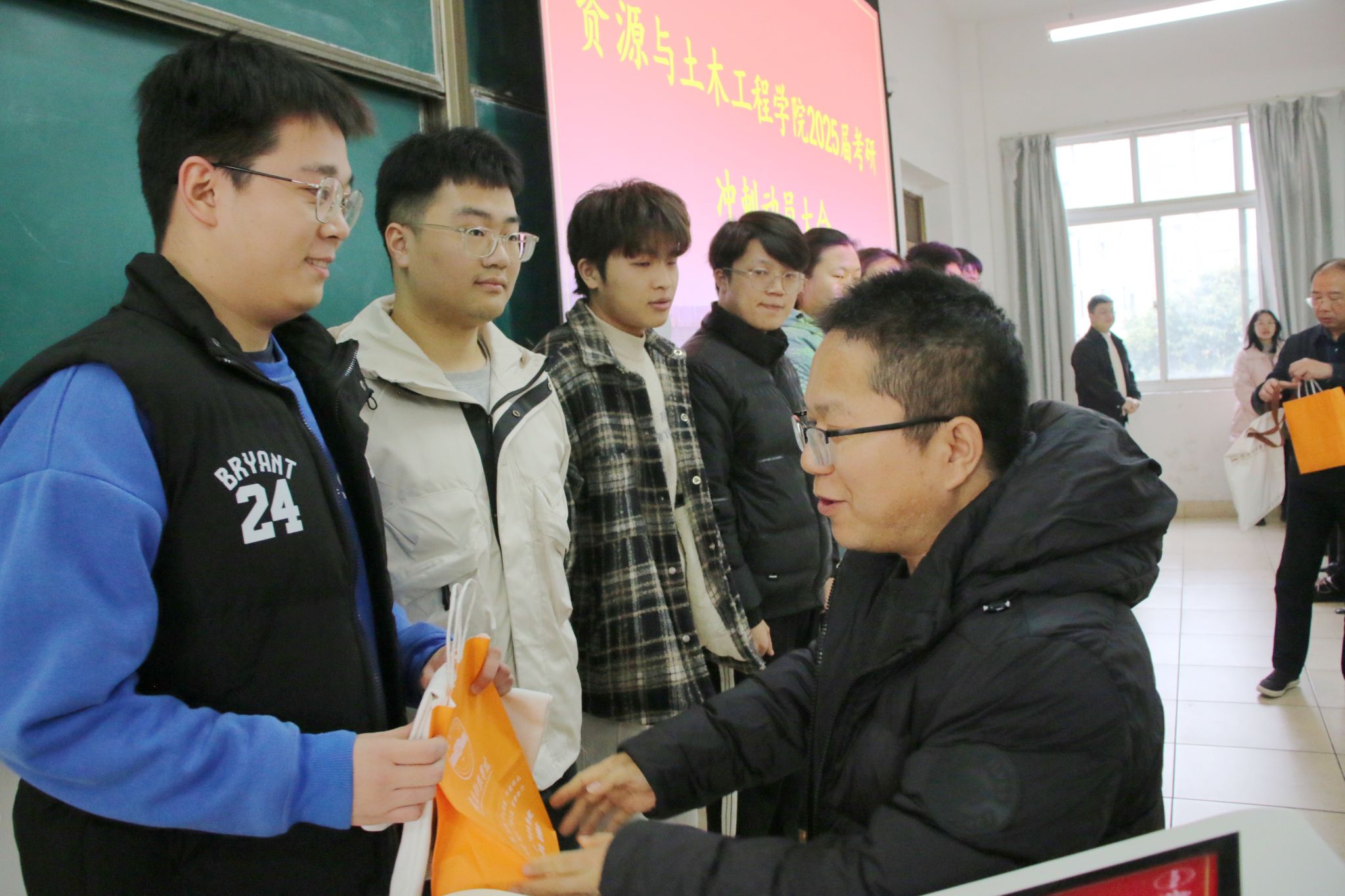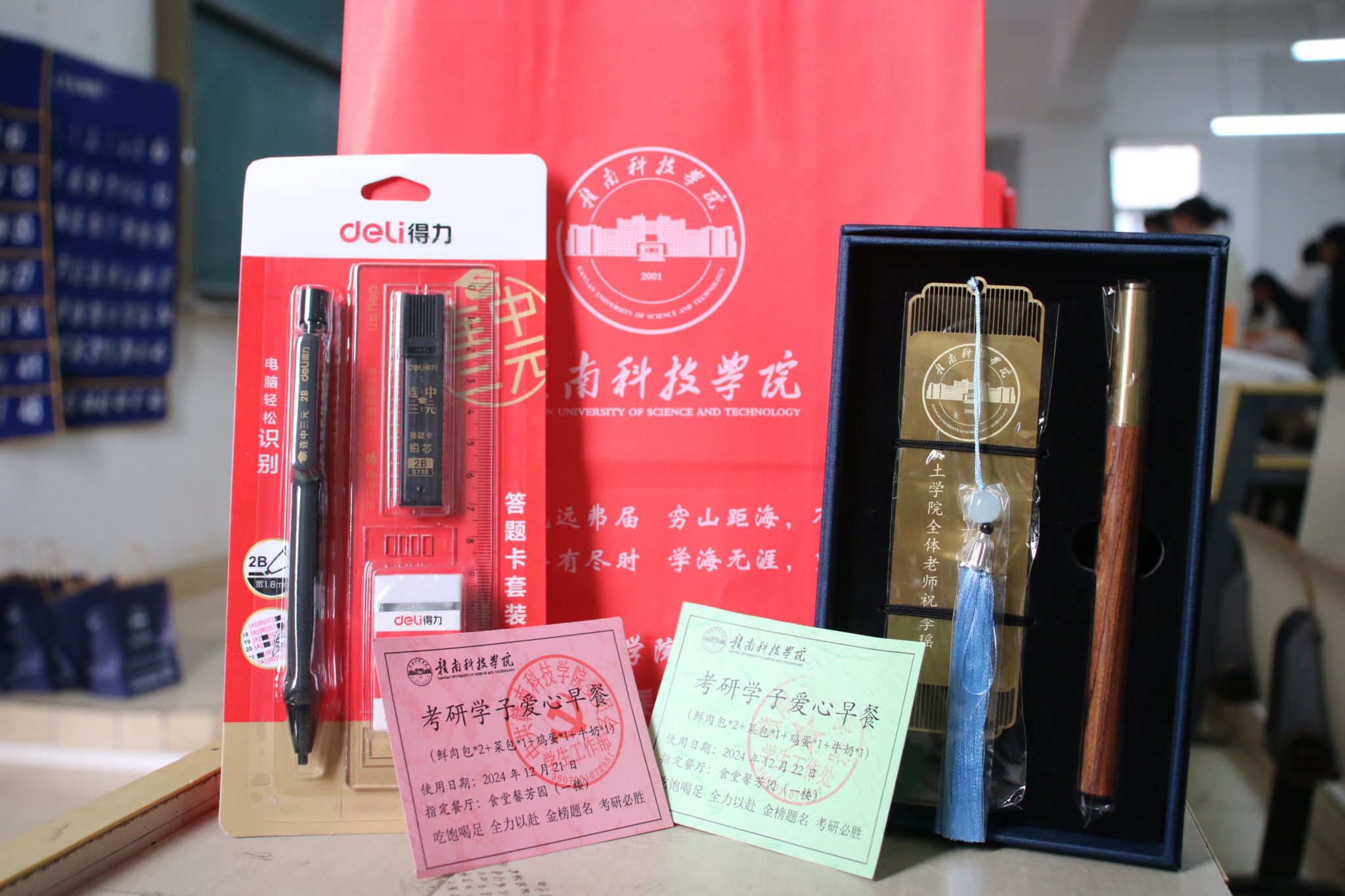 大会尾声,威廉williamhill老师为考研学子们精心准备了“考研能量包”。能量包内不仅装有签字笔、铅笔、橡皮等考试必备文具,还有定制的精美本子和时尚斜挎包,贴心附上两张“爱心早餐券”。这些物品承载着学院满满的关怀与殷切的祝福,在缓解学子们备考压力的同时,让他们切实感受到学院大家庭的温暖与支持。一份小小的“考研能量包”,蕴含着无穷的力量与希望,将陪伴考研学子们在逐梦路上奋勇前行,披荆斩棘。