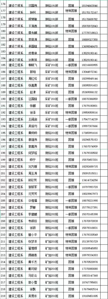 本网讯:建设工程系(资源与建筑工程学院)2021-2022学年18级—21级家庭经济困难学生名单公示: