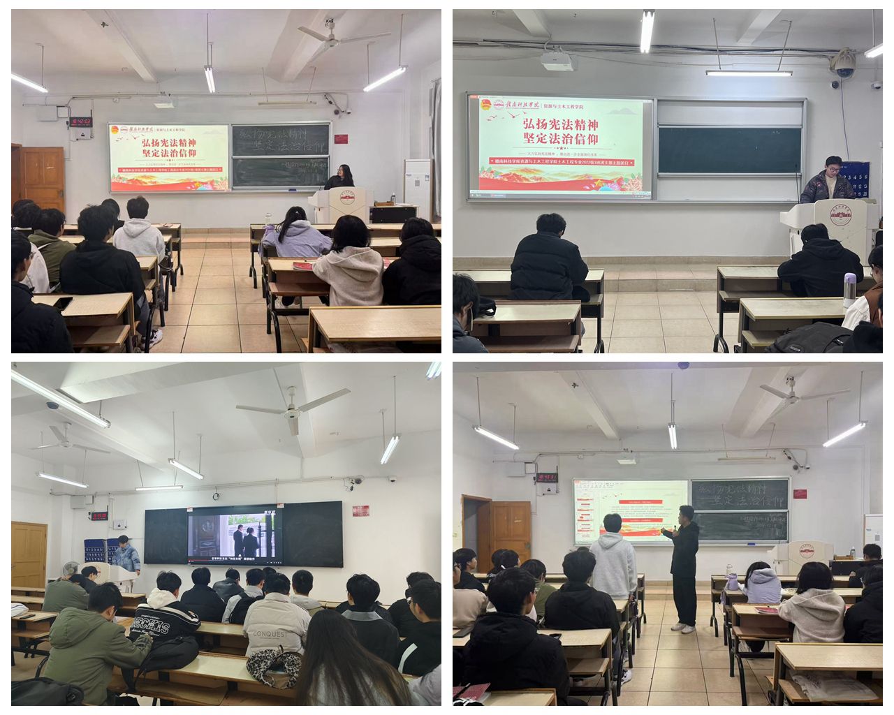 依托各团支部开展主题团日活动。12月1日至13日,学院各团支部团支书组织班级全体团员和青年参与学习“弘扬宪法精神、坚定法治信仰”主题团日活动。活动现场,各团支书领学宪法相关内容,开展问答环节,并组织班级同学共同观看共产党员网微视频《宪法之力,守护你我》,分享学习心得体会,同学们感悟全面依法治国的伟大成就,强化宪法法律意识,做尊法、学法、守法、用法的大学生。