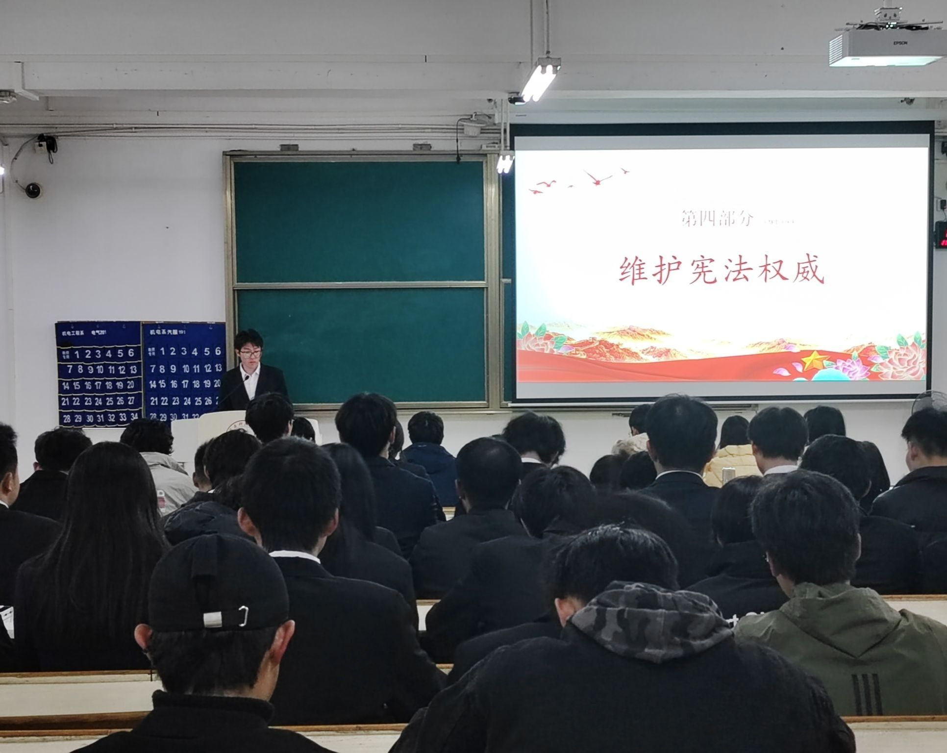 刘辉老师进行学习小结,他鼓励同学们广泛阅读法律书籍,深入了解宪法,国旗法、国歌法、国徽法等宪法相关法,爱国主义教育法,深刻感悟新中国宪法发展历程和宪法的地位作用,深化对宪法的政治认同、理论认同、思想认同和行为认同。