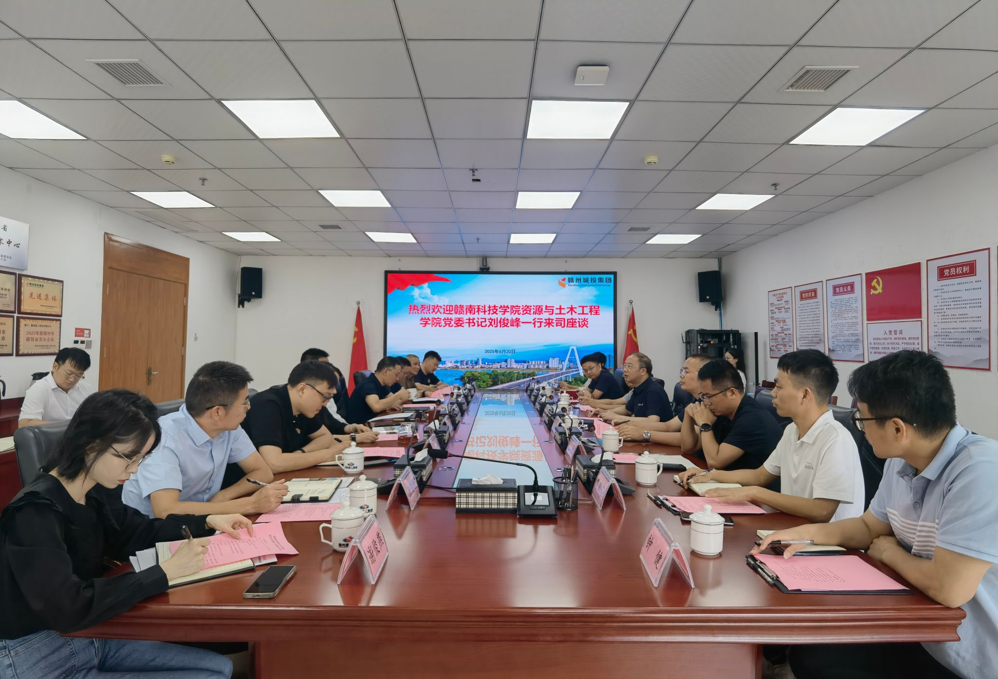 本网讯:为深化产教融合、推进校企合作,6月20日上午,威廉williamhill党委书记刘俊峰率队前往赣州城投集团旗下的赣州建工集团、赣州城投建工集团、虔州城物贸公司开展访企拓岗及校企合作调研活动。学院党委委员代靖怡,土木工程教研室主任易凌等多位专任教师及博士参与此次活动。活动由赣州城投集团党委委员、副总经理,赣州建工集团董事长赖连洪主持。