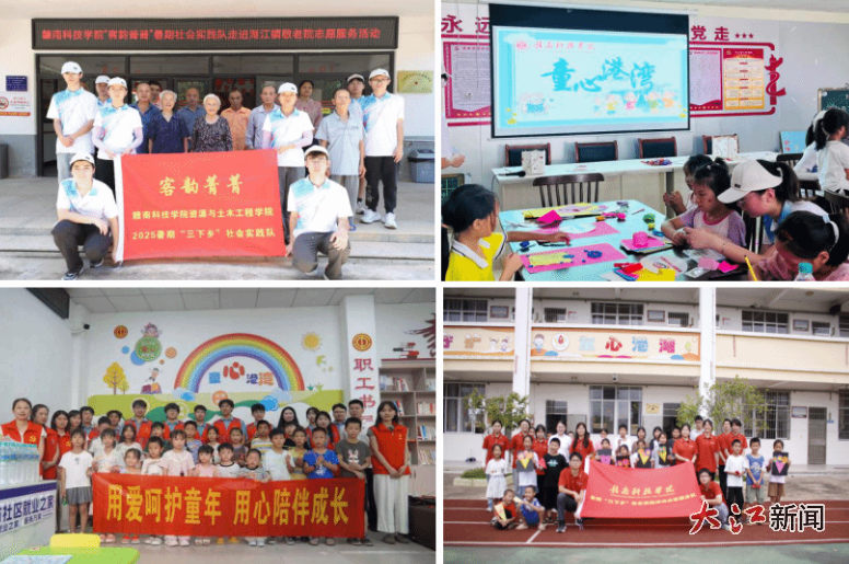 “红矿魂·钨金行”实践队在大吉山镇开展“童心港湾”活动,与孩子们互动,见证童真绽放。“客韵菁菁”实践队在湖江镇敬老爱幼,为长者送去关怀,组织儿童安全教育活动。“‘信’火相传”实践队开展防溺水课堂、少儿编程课等活动,点亮儿童求知双眸。“璞玉润乡”实践队在寒信村关爱留守儿童,通过艺术创作、歌曲合唱、安全问答等活动,增强孩子们的安全防范意识。“法梦启航·情暖洋江”实践队开展主题活动,让小朋友们在趣味竞答中学习党史知识。