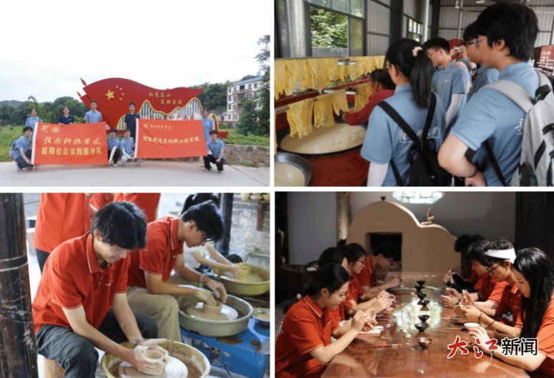 “夏乡”筑梦实践队深入上垅村观摩腐竹制作,见证传统工艺的匠心传承,探索非遗与现代生活的融合路径。“言续者”实践队在赣县区白鹭古村调研戏曲、体验擂茶制作,感受舌尖上的非遗魅力。“e路星光”实践队探访周田镇清代古建筑群,为古建筑保护难题寻求解决方案。“星火亮路”和“璞玉润乡”社会实践队在寒信古村领略客家古村落的厚重底蕴,感悟耕读传家精神。“赣韵龙窑·薪火相传”实践队在吉州窑景区探寻陶瓷绝技,领略老祖宗智慧。
