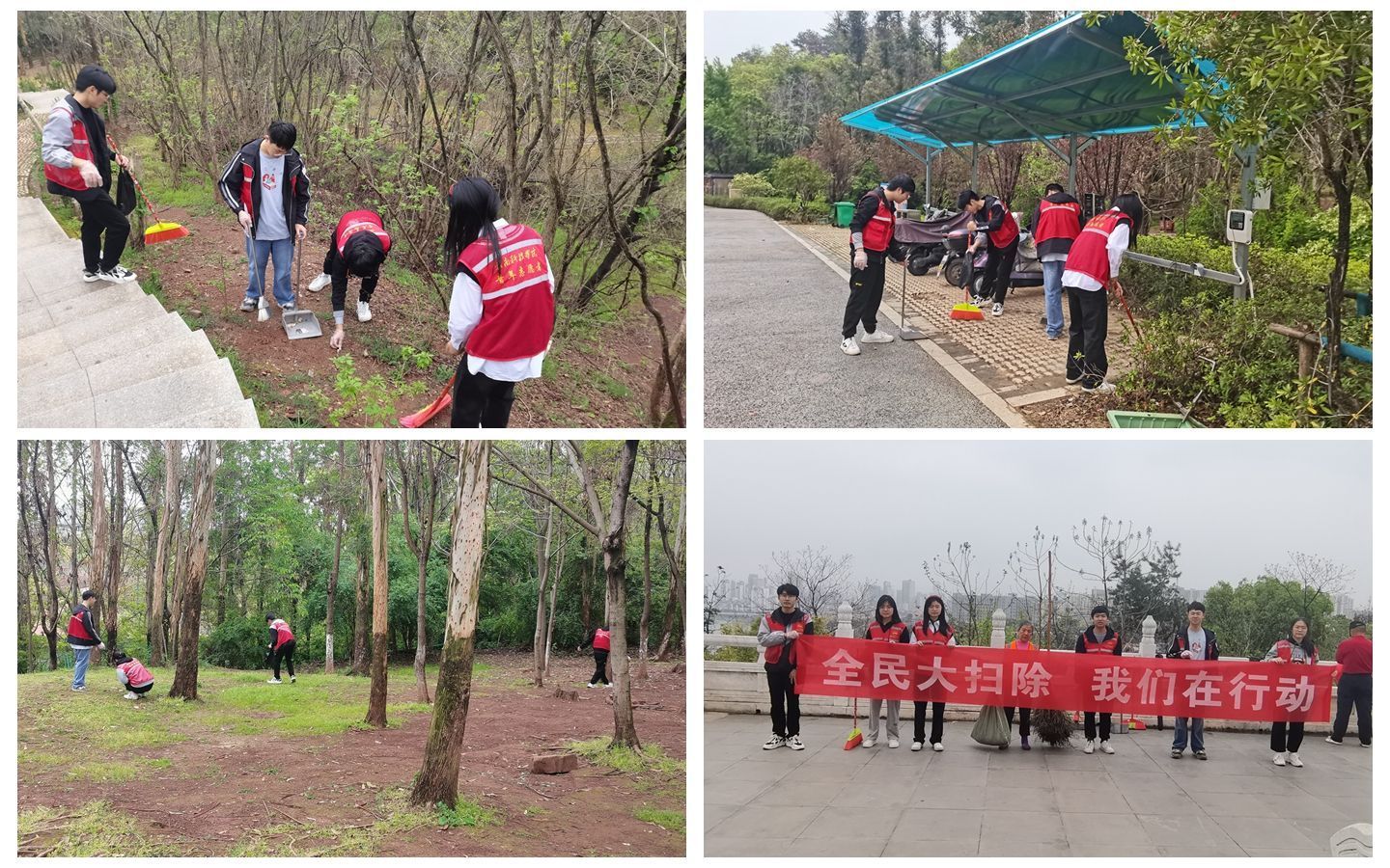 全民大扫除与植树节志愿服务活动。为了不断发展壮大学雷锋志愿服务队伍,让学雷锋在人民群众特别是青少年中蔚然成风,建设工程系组织志愿者参加全民大扫除与植树节清理活动,广大青年学子落实到行动,在杨梅渡公园捡拾烟头、塑料等垃圾,为保持良好的生态环境贡献一份力量。