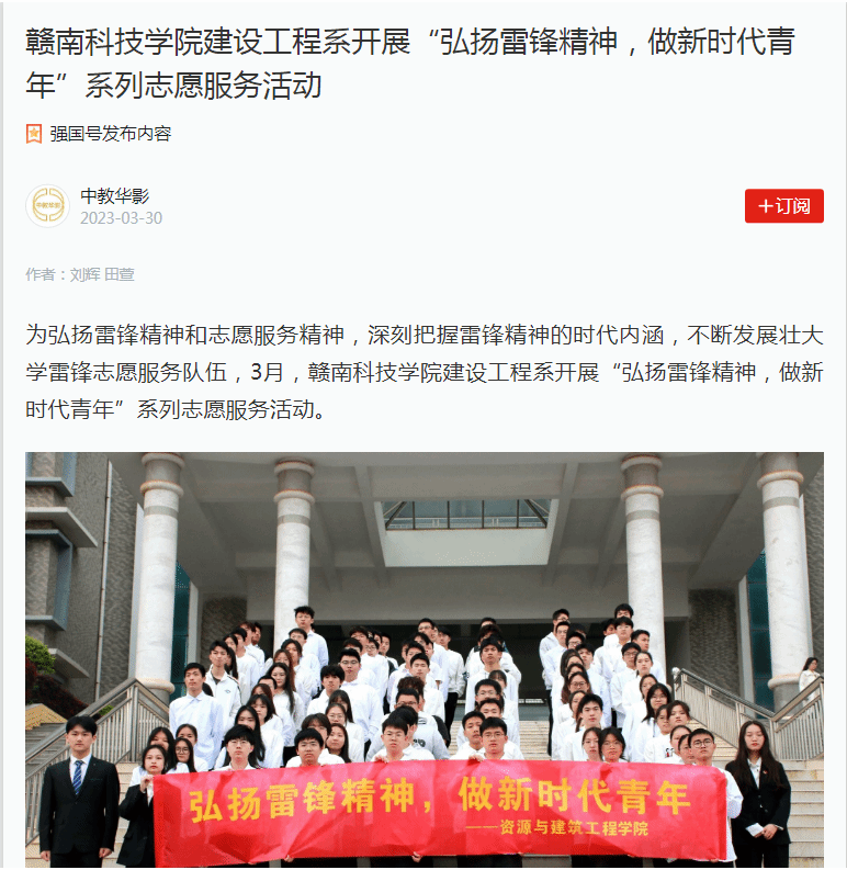 学习强国中教华影3月30日电(通讯员:刘辉 田萱):为弘扬雷锋精神和志愿服务精神,深刻把握雷锋精神的时代内涵,不断发展壮大学雷锋志愿服务队伍,3月,william威廉中文建设工程系开展“弘扬雷锋精神,做新时代青年”系列志愿服务活动。