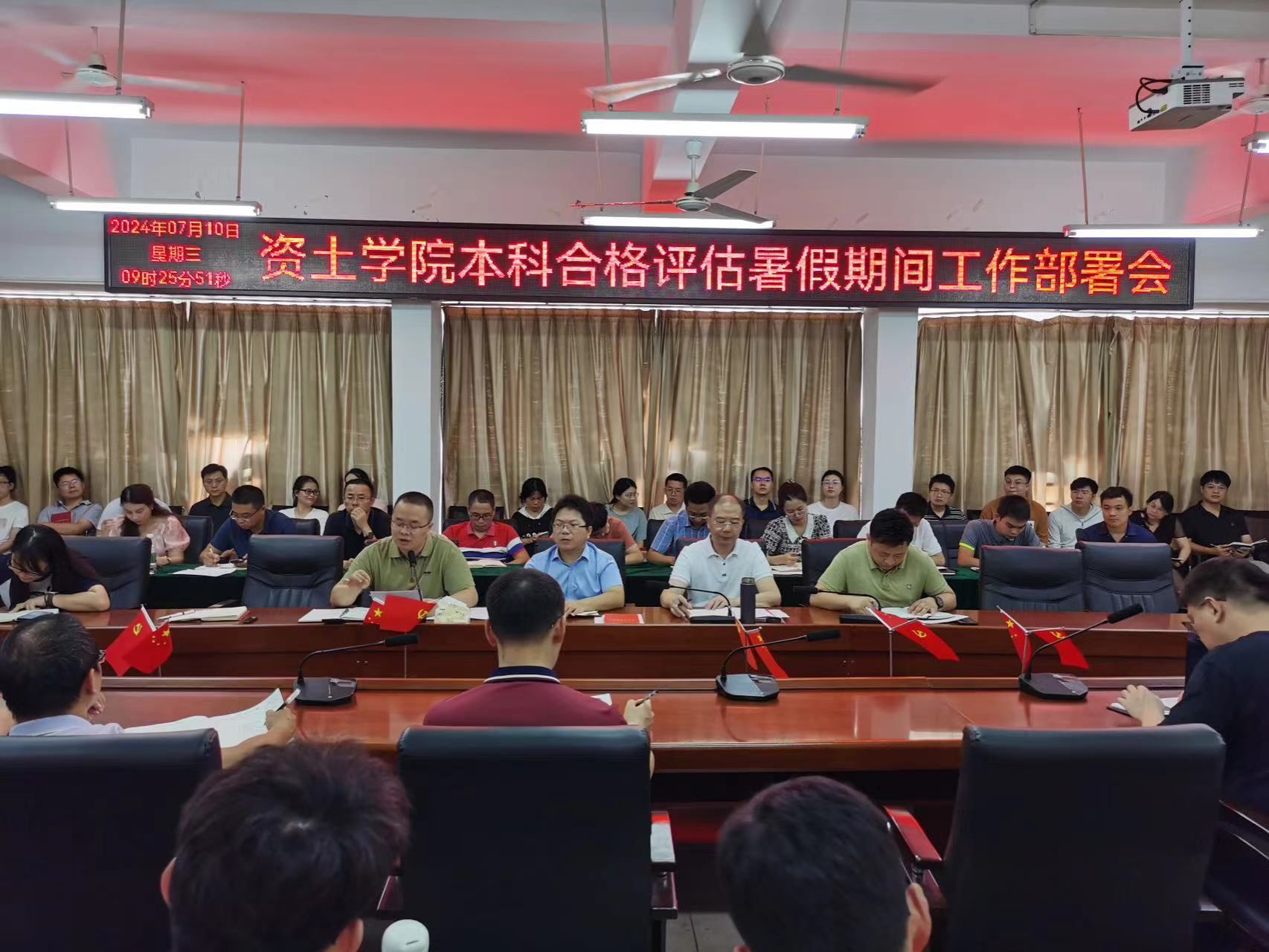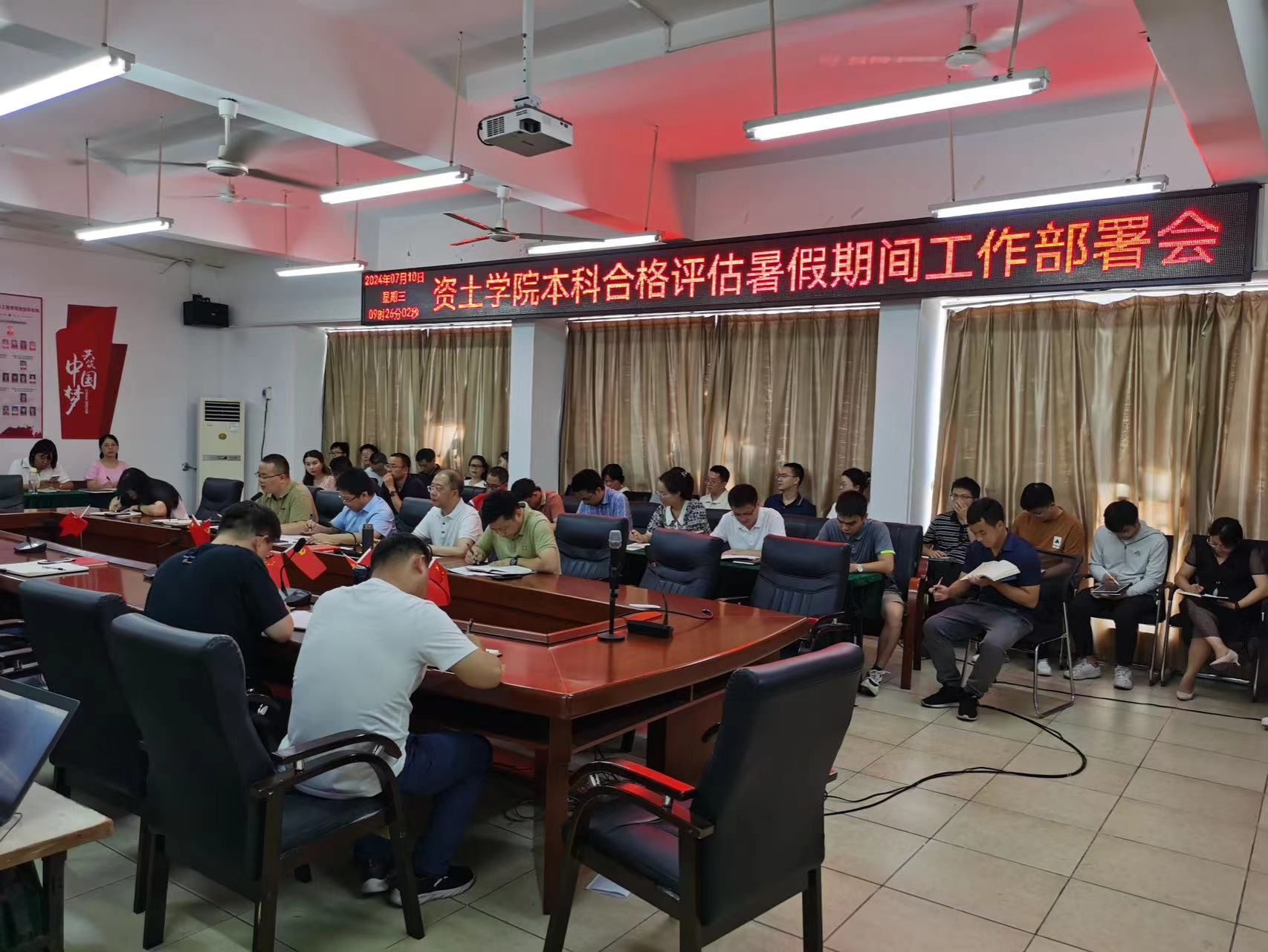 本网讯:为确保本科合格评估工作的顺利进行,威廉williamhill于7月10日上午在崇善楼Z713召开本科合格评估暑假期间工作部署会,共同商讨并部署暑期本科合格评估关键工作任务。资土学院党委书记刘俊峰、行政负责人卢志刚、教学负责人代靖怡、学工负责人涂黎明以及资土学院全体教职工参与本次会议。会议由刘俊峰主持。