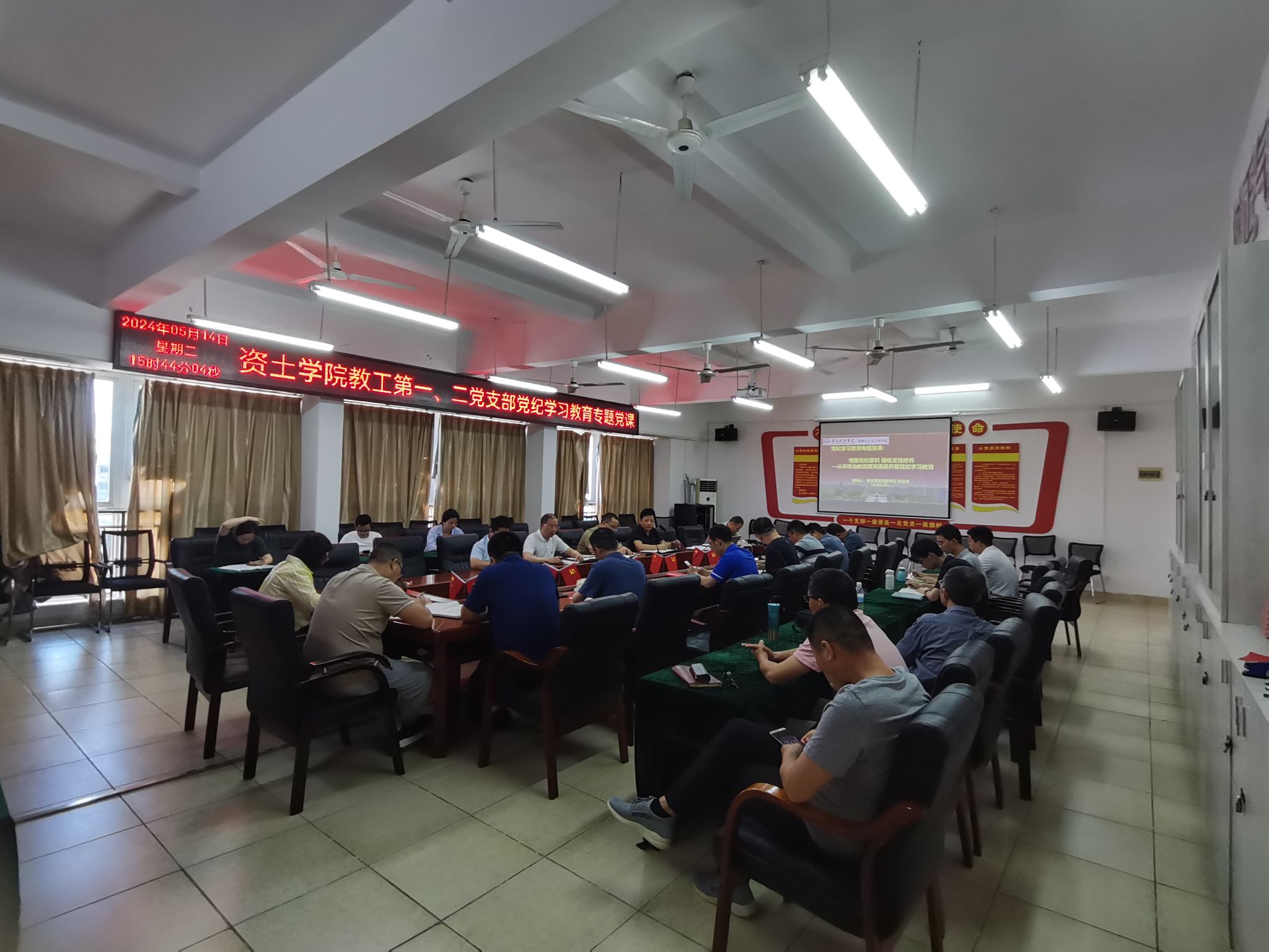 本网讯:为了增强党纪意识 锤炼党性修养。5月14号下午,威廉williamhill党委书记刘俊峰在崇善楼Z713为资土学院教工第一、二党支部讲授了党纪学习教育专题党课,全体教工党员聆听本次党课。