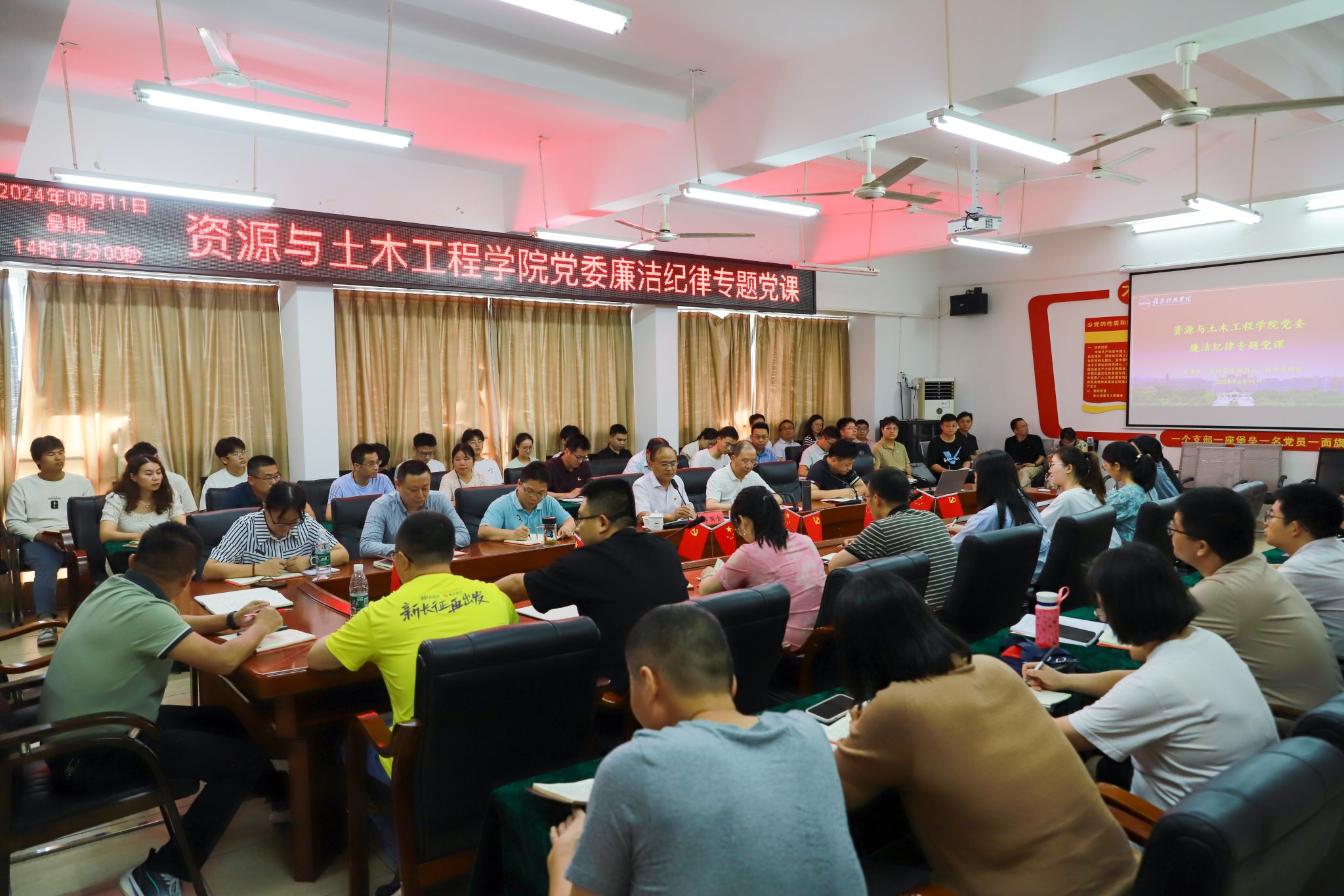 本网讯:为推动党纪学习教育走深走实,推进党风廉政建设,增强党员的廉洁自律意识,教育引导全体党员学纪、知纪、明纪、守纪,做清正廉洁的共产党员,6月11日下午,学校党委副书记、校长李国金在崇善楼Z713为威廉williamhill师生党员讲授廉洁纪律专题党课,资土学院全体教工党员、学生党员代表、民主党派和无党派老师共同聆听。党课由资土学院党委书记刘俊峰主持。