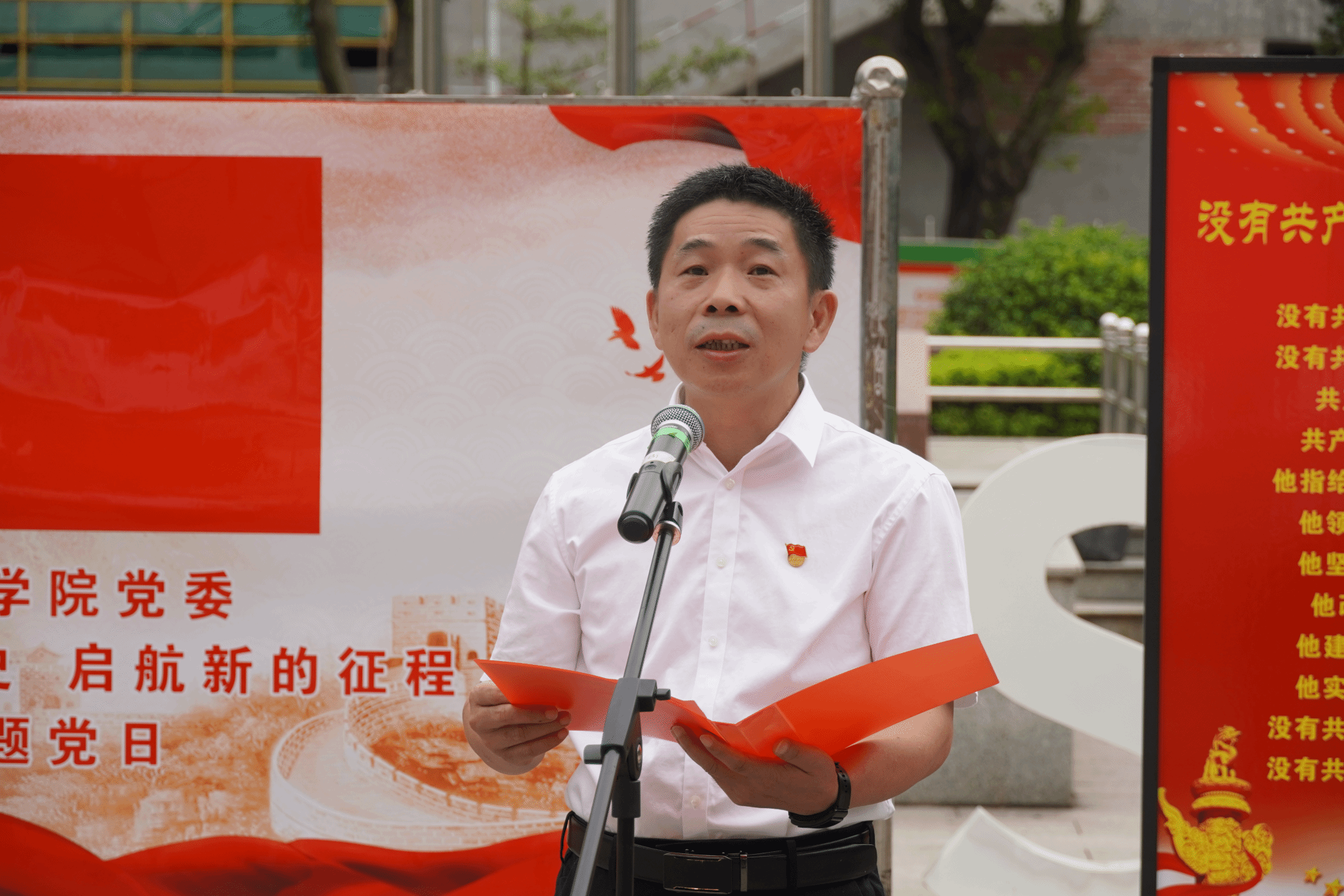 学校党委委员、副校长何锦龙满怀对党的深情上了一堂生动的微党课,他回顾了中国共产党的创业历程,号召全体师生党员紧密团结在党的周围,弘扬坚持真理、坚守理想,践行初心、担当使命,不怕牺牲、英勇斗争,对党忠诚、不负人民的伟大建党精神,并对全体师生党员提出要求:一是做有理想信念、有道德情操、有扎实学识、有仁爱之心的“四有”好老师,为党育人、为国育才;二是做时代好青年,不负时代,不负韶华,不负党和人民的殷切期望;三是做事业接班人,把个人的职业梦想融入伟大的中国梦。在全面建设社会主义现代化国家、全面推进中华民族伟大复兴的伟大征程中贡献我们青春的力量。最后,活动在全体合唱《没有共产党就没有新中国》中圆满结束。