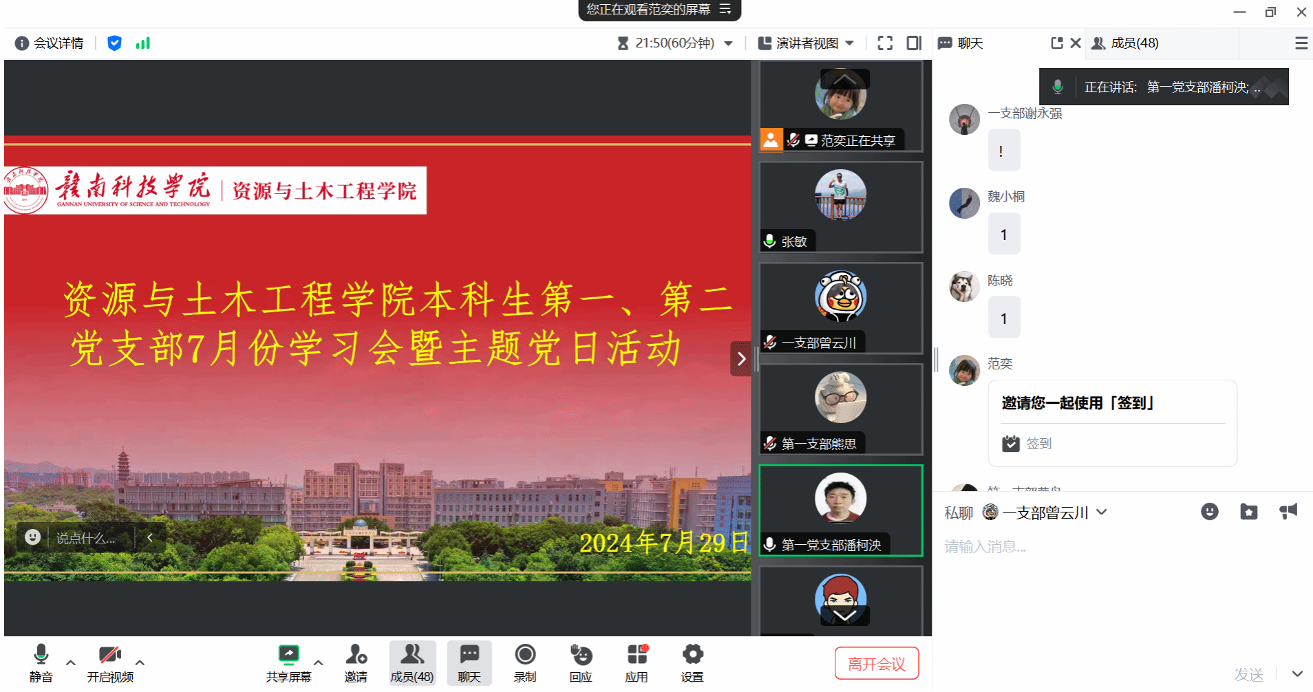 本网讯:正值暑假期间,为进一步强化党支部党员党性修养,凝聚奋进力量,激发青春担当,7月29日晚,威廉williamhill本科生第一、第二党支部在腾讯会议平台开展“铭初心坚守信念,强党性践行使命”线上主题党日活动,确保每月党组织活动正常进行。本次活动由本科生第二党支部书记张敏主持,本科生第一、第二党支部全体党员共同参与。