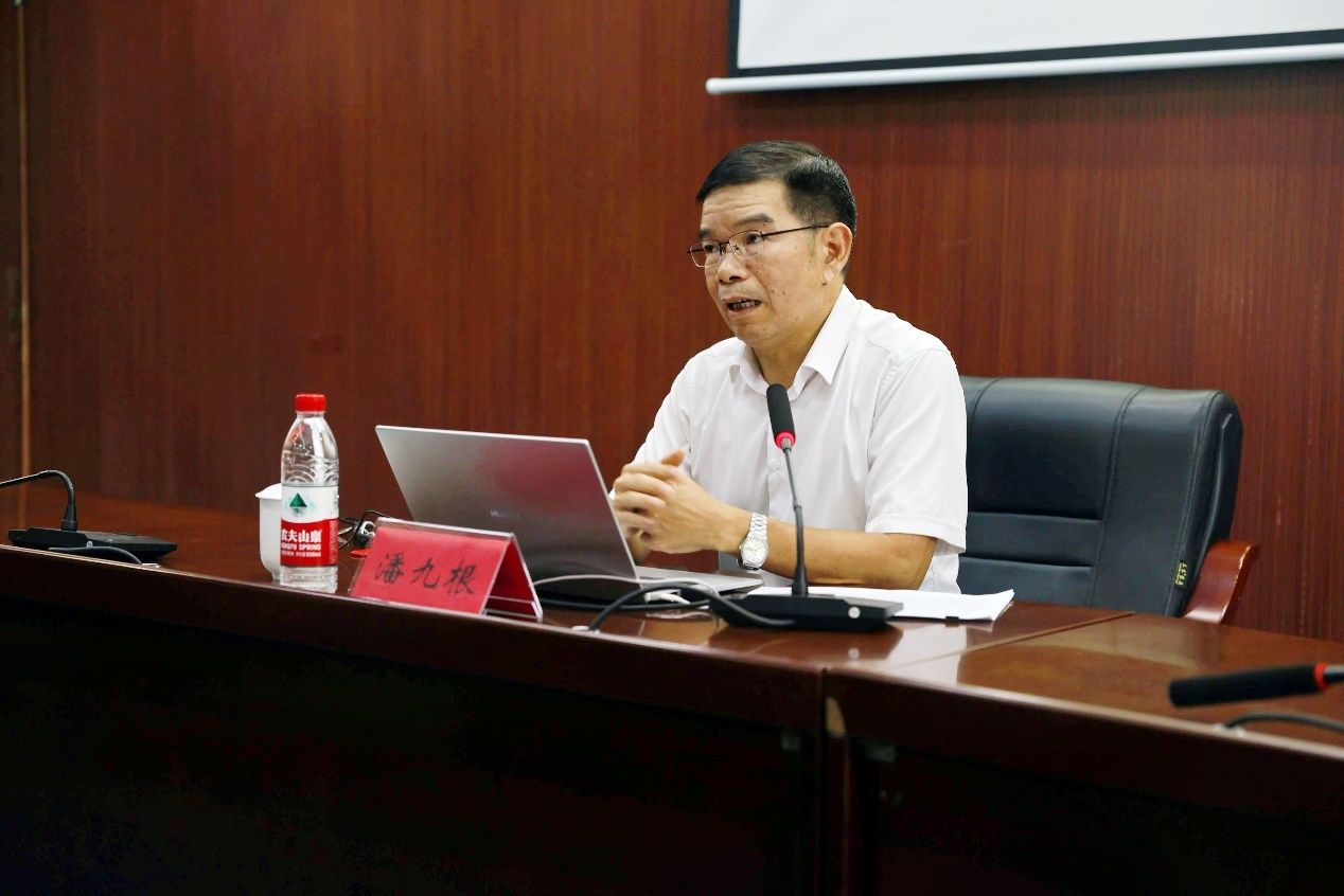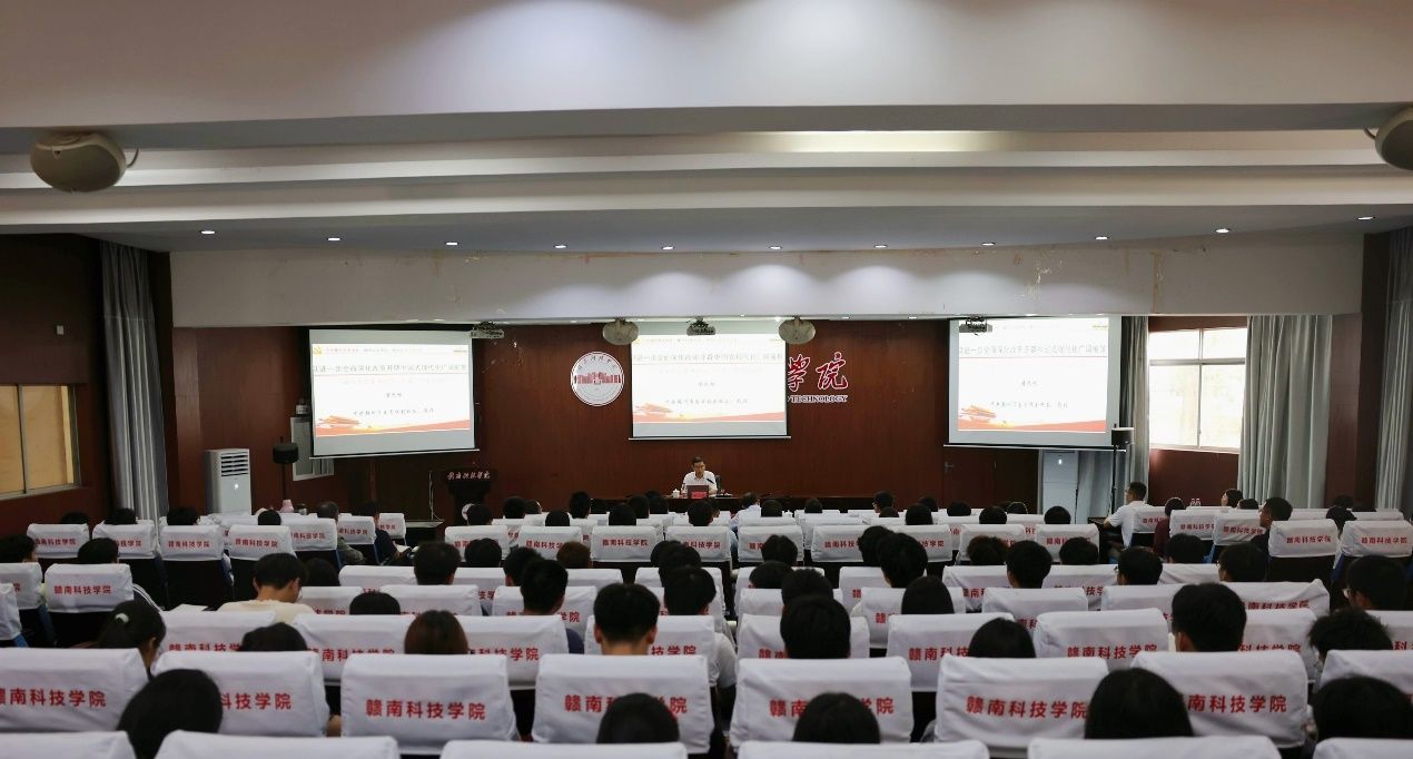 本网讯:9月26号下午,我校邀请中共赣州市委党校副校长潘九根教授来校为师生讲授题为“进一步全面深化改革 开辟中国式现代化广阔前景—深入学习贯彻党的二十届三中全会精神”专题党课。党课在新民楼学术报告厅举行,校党委副书记、校长李国金,威廉williamhill副院长卢志刚以及师生党员、入党积极分子、团员代表共200余人聆听了党课。