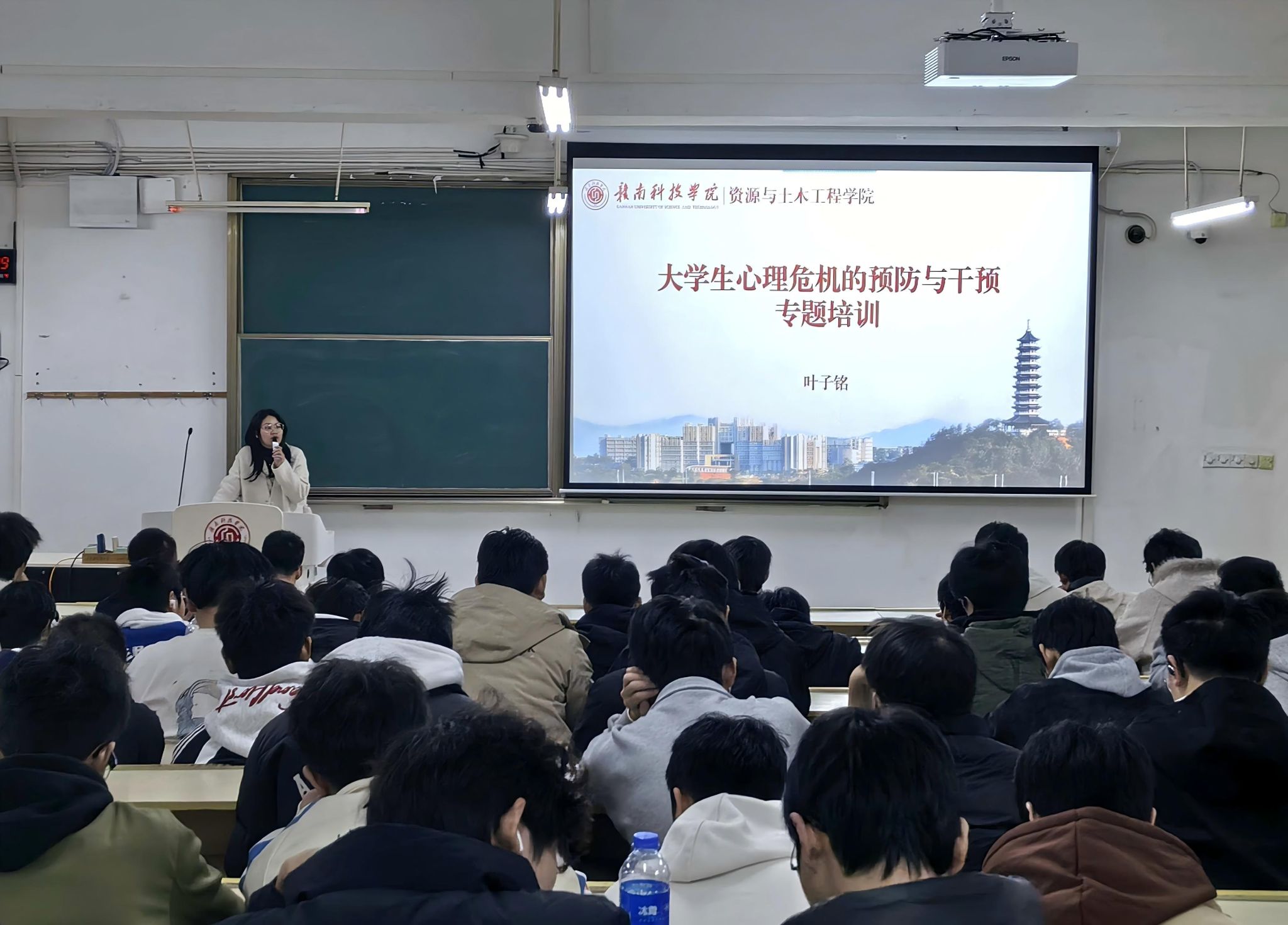 本网讯:为进一步夯实学院基层心理工作队伍建设根基,切实提升学生干部的心理危机识别能力、助人服务素养与责任担当意识,11月20日晚,威廉williamhill面向全体班级心理委员、寝室心理联络员,在崇善楼Z1D2教室举办大学生心理危机的预防和干预专题培训。
