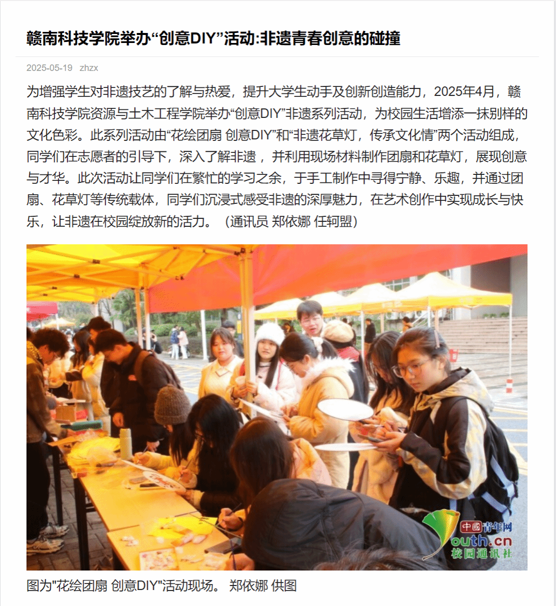 为增强学生对非遗技艺的了解与热爱,提升大学生动手及创新创造能力,2025年4月,william威廉中文威廉williamhill举办“创意DIY”非遗系列活动,为校园生活增添一抹别样的文化色彩。此系列活动由“花绘团扇 创意DIY”和“非遗花草灯,传承文化情”两个活动组成,同学们在志愿者的引导下,深入了解非遗 ,并利用现场材料制作团扇和花草灯,展现创意与才华。此次活动让同学们在繁忙的学习之余,于手工制作中寻得宁静、乐趣,并通过团扇、花草灯等传统载体,同学们沉浸式感受非遗的深厚魅力,在艺术创作中实现成长与快乐,让非遗在校园绽放新的活力。(通讯员 郑依娜 任轲盟)