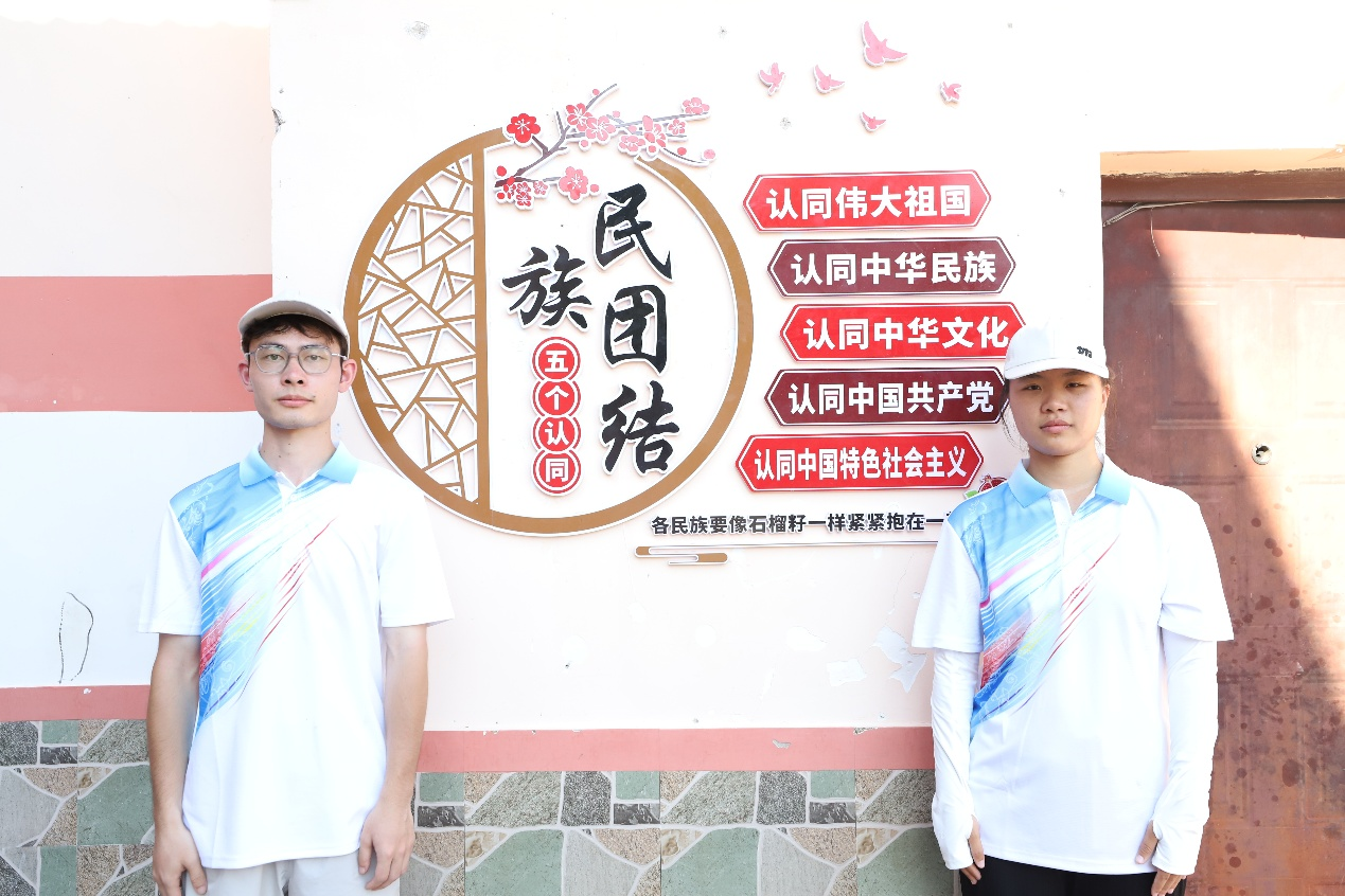 图为队员们打卡民族团结标语墙。李晓玲 凌俐 供图