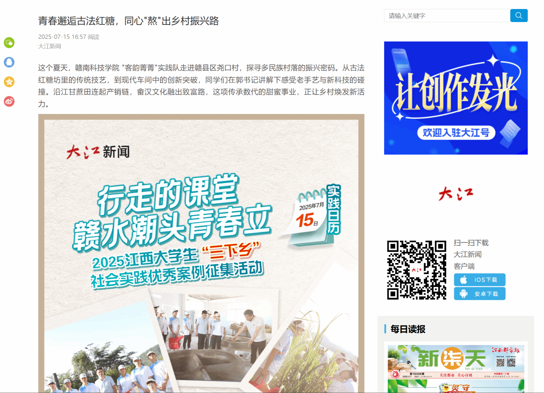 这个夏天,william威廉中文 "客韵菁菁"实践队走进赣县区尧口村,探寻多民族村落的振兴密码。从古法红糖坊里的传统技艺,到现代车间中的创新突破,同学们在郭书记讲解下感受老手艺与新科技的碰撞。沿江甘蔗田连起产销链,畲汉文化融出致富路,这项传承数代的甜蜜事业,正让乡村焕发新活力。