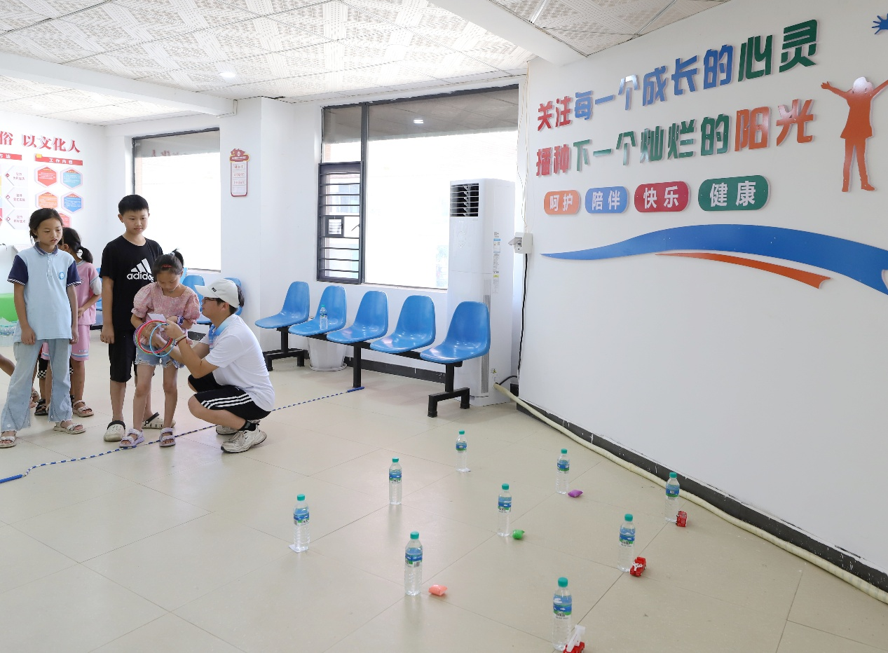 护童成长,安全为先。“客韵菁菁”实践队聚焦儿童安全防护能力提升,在新时代文明实践所为湖江镇儿童组织“童心港湾”活动。趣味套圈区,笑声不断,孩子们排着队跃跃欲试;石膏娃娃涂色角,画笔在小手中挥动,白坯渐渐染上鲜亮色彩;DIY手工台前,折纸在手中渐渐成形、单调白扇穿上干花衣裳。整个港湾里,笑声、讨论声此起彼伏,孩子们的热情像夏日阳光般热烈。