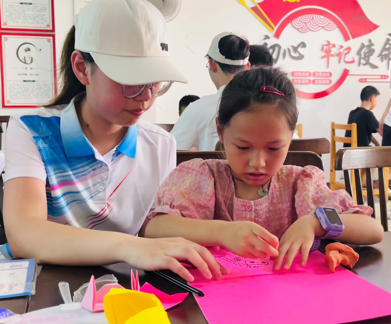 图为队员和孩子一起折纸、绘画。李晓玲 凌俐 供图