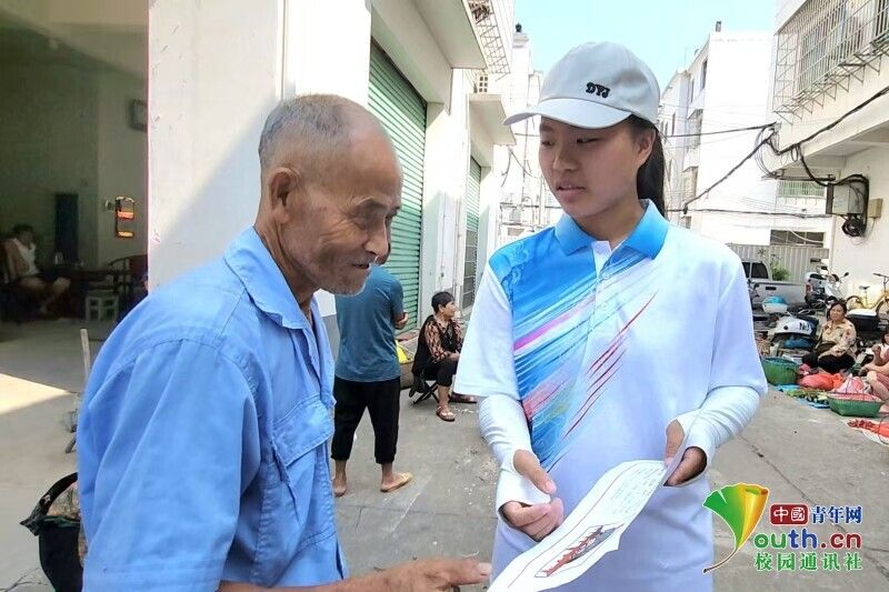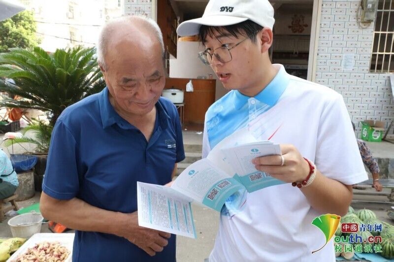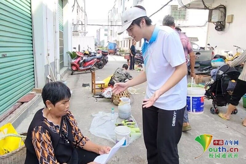 图为实践队员为当地居民解读高校学生资助政策。凌俐 供图