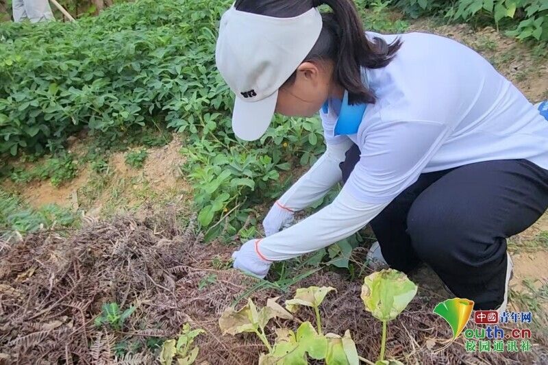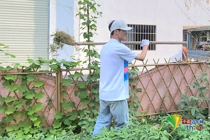 图为实践队员为农户菜园清理杂草。李晓玲 供图