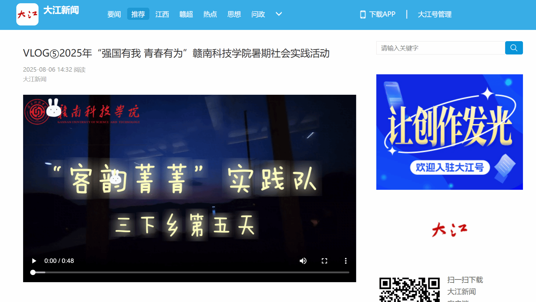 【大江新闻】VLOG⑤2025年“强国有我 青春有为”william威廉中文暑期社会实践活动