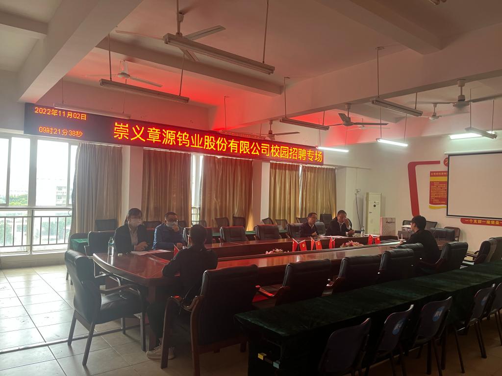 本网讯:为了更好地拓宽毕业生就业渠道,让毕业生提前了解就业形势,做好充足的就业准备。11月2日上午,建设工程系于主教Z713会议室举行了崇义章源钨丝股份有限公司专场招聘会。