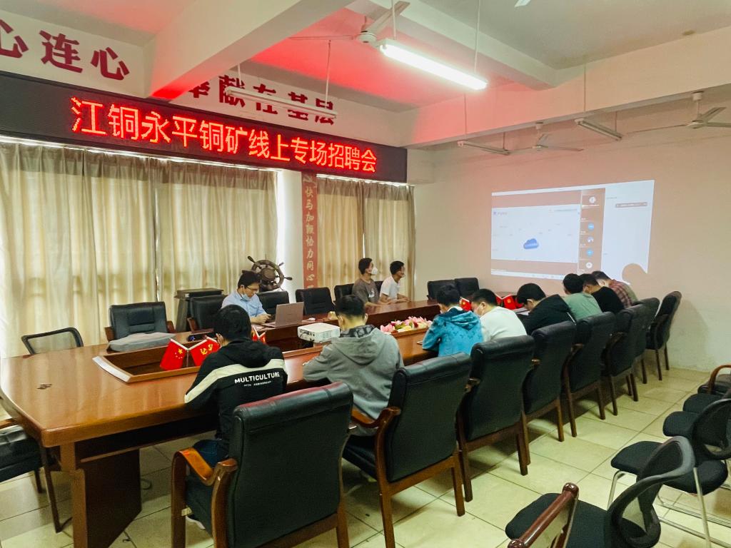 本网讯:疫情之下,今年的就业形势依然严峻复杂,为切实做好2022届毕业生就业工作,拓宽毕业生就业渠道,促进毕业生顺利就业,最大程度减小疫情影响,3月15日上午,建设工程系在系会议室举行了江铜集团永平铜矿线上专场招聘会,江铜永平铜矿人力资源部熊部长应邀为毕业生们做线上招聘讲解,建工系主任卢志刚、就业辅导员徐新木,以及2018级采矿工程、矿物加工工程、测绘工程等专业共20余名毕业生聆听了宣讲会。