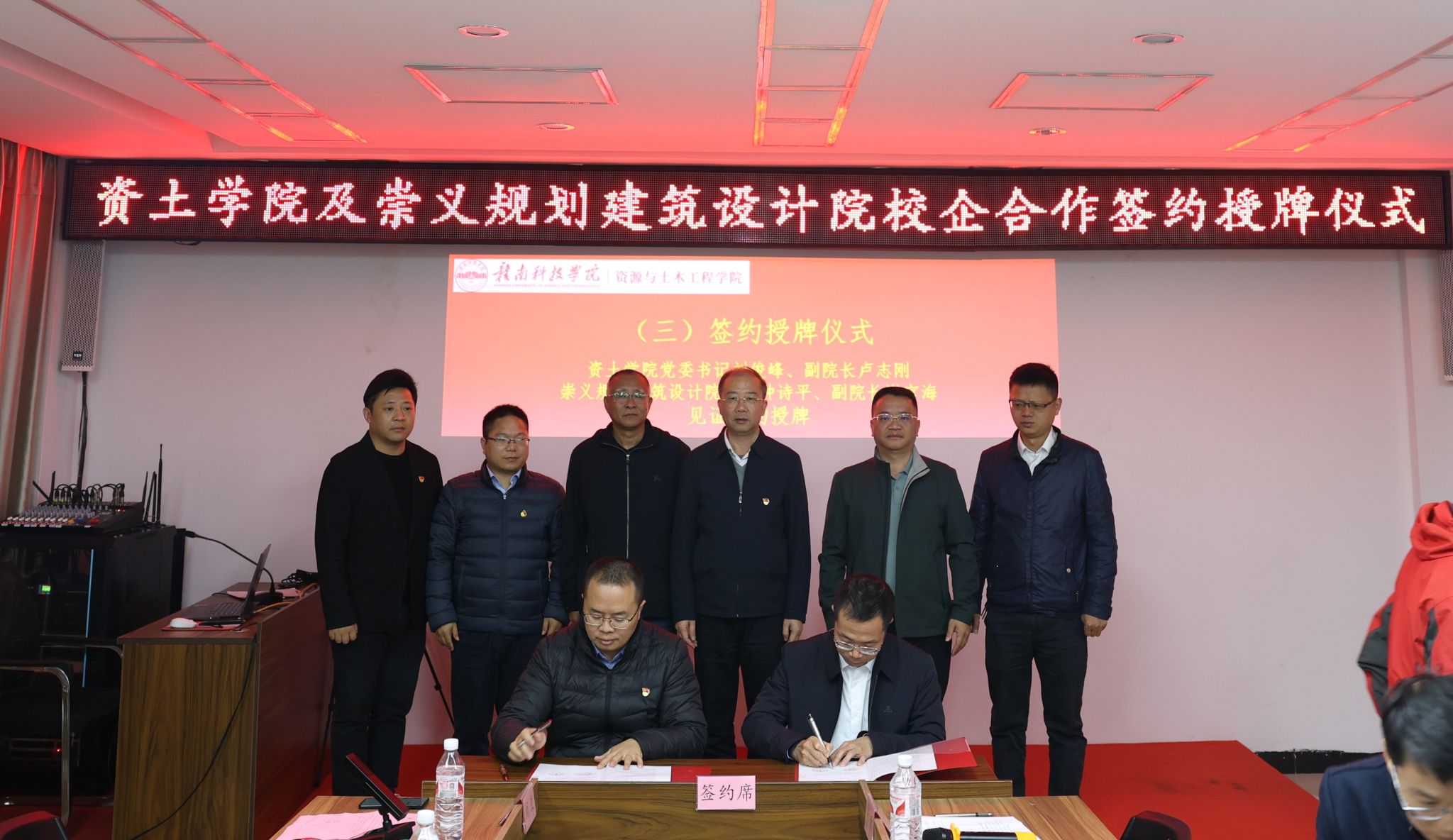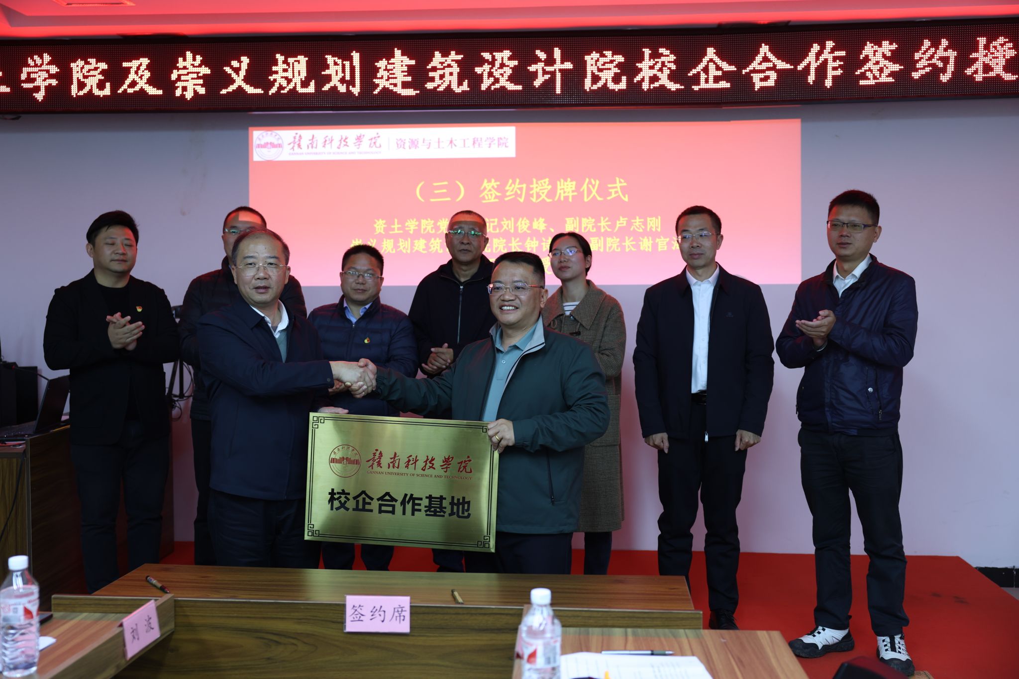 在全场嘉宾的共同见证下,双方代表进行了签约仪式。随后,william威廉中文威廉williamhill党委书记刘俊峰与崇义规划建筑设计钟诗平院长举行了授牌仪式,标志着双方的校企合作正式拉开帷幕。