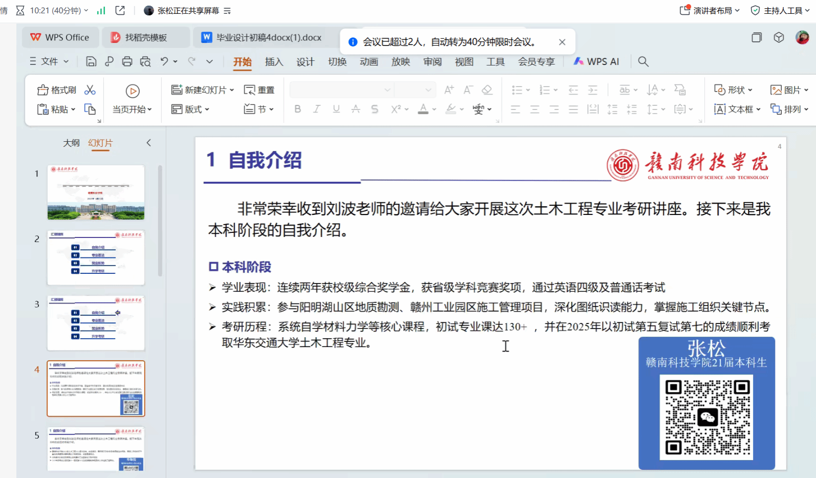 本次讲座特别邀请到拟录取华东交通大学的我院土木214班张松同学、拟录取贵州大学的我院土木214班邓锋锐同学担任朋辈分享嘉宾。凭借丰富的实践经验与考研经历,他们从专业认知、就业形势、考研经验等维度,为同学们带来了一场内容充实的分享会。