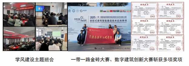 围绕智育提升,学院实施2025年学风建设月,开展高数模拟考等系列活动,引导学生树立正确学习观念;将竞赛、实践、社团有机融合,以“挑战杯”“互联网+”等科创赛事及专业竞赛为牵引,推动“以赛促教、以赛促学”,组织学生积极投身学科竞赛与科学研究,在“2025‘一带一路’暨金砖国家技能发展与技术创新大赛”“全国数字建筑创新应用大赛”等比赛中取得佳绩。